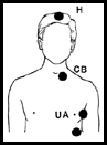 COLLARBONE (CB). UNDERARM (UA), HEAD (H)